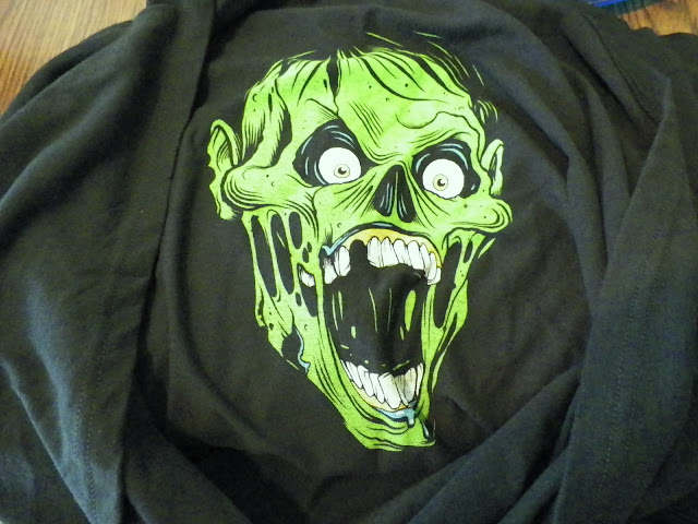 We also got one of those goofy zombie shirts. You know, the kind you pull up over your head and there is a zombie face under it. For 5 bucks, I could not resist.